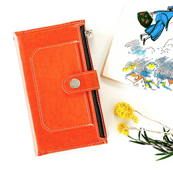 小銭やカード類を収納できるファスナー付きのポケットと、 ICカードや定期券などの収納に便利なカードポケット付きの手帳型ケースです。