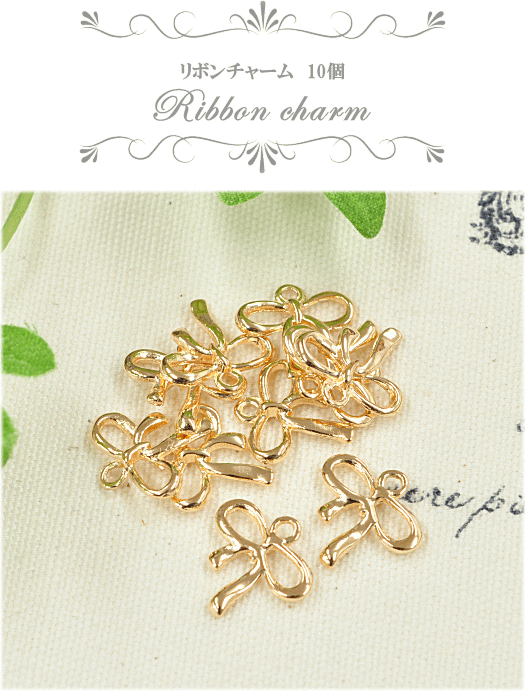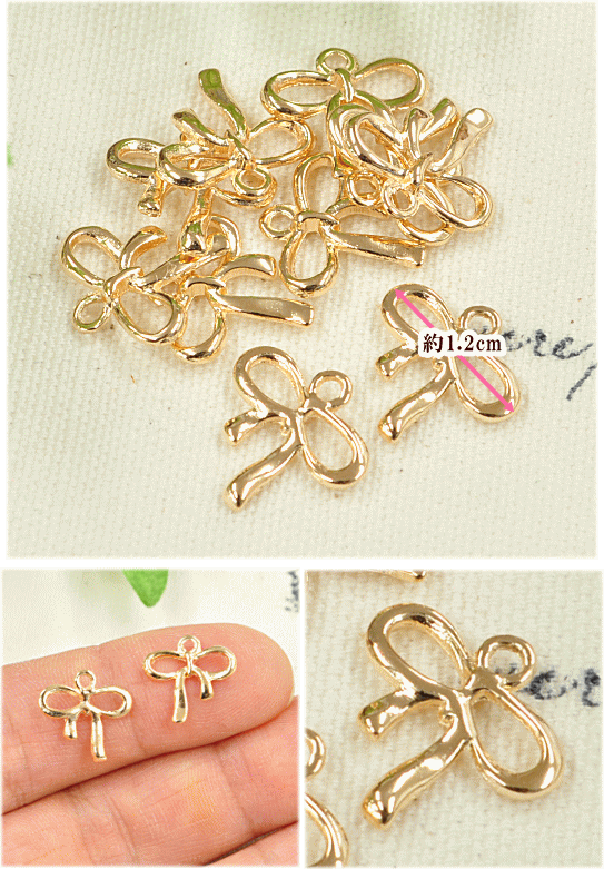 )リボンのチャーム ゴールド 10個入り可愛さもあり上品な大人っぽさも感じられるプチリボンのカン付きチャーム。