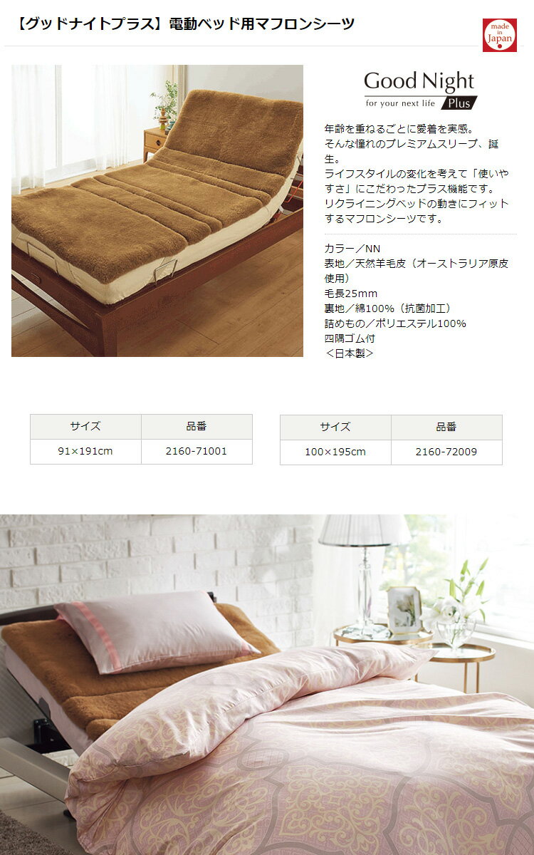 ■【グッドナイトプラス】電動ベッド用マフロンシーツ ■サイズ ・NCD-DB91:91×191cm ・NCD-DB100:100×195cm ■カラー:NN ■表地:天然羊毛皮(オーストラリア原皮使用) ■毛長25mm ■裏地:綿100%(抗菌加工) ■詰めもの:ポリエステル100% ■四隅ゴム付 ■日本製 年齢を重ねるごとに愛着を実感。