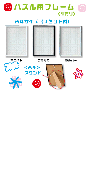 アイデア次第で、素敵なオリジナルパズルの出来上がり! サイズは2タイプで、専用のフレームも一緒に購入できます。