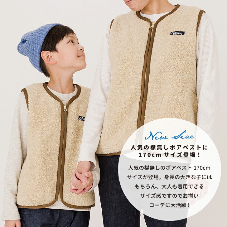 ボアベスト(浅Vネック) 【170cm】 キッズ レディース 子供 大人 ジュニア 男の子 女の子 アウター ジャケット トップス ファッション ノーカラー 襟なし 襟無し フード無し お揃いコーデ ペアルック 親子コーデ カジュアル アメカジ ナチュラル 冬 温かい 暖かい