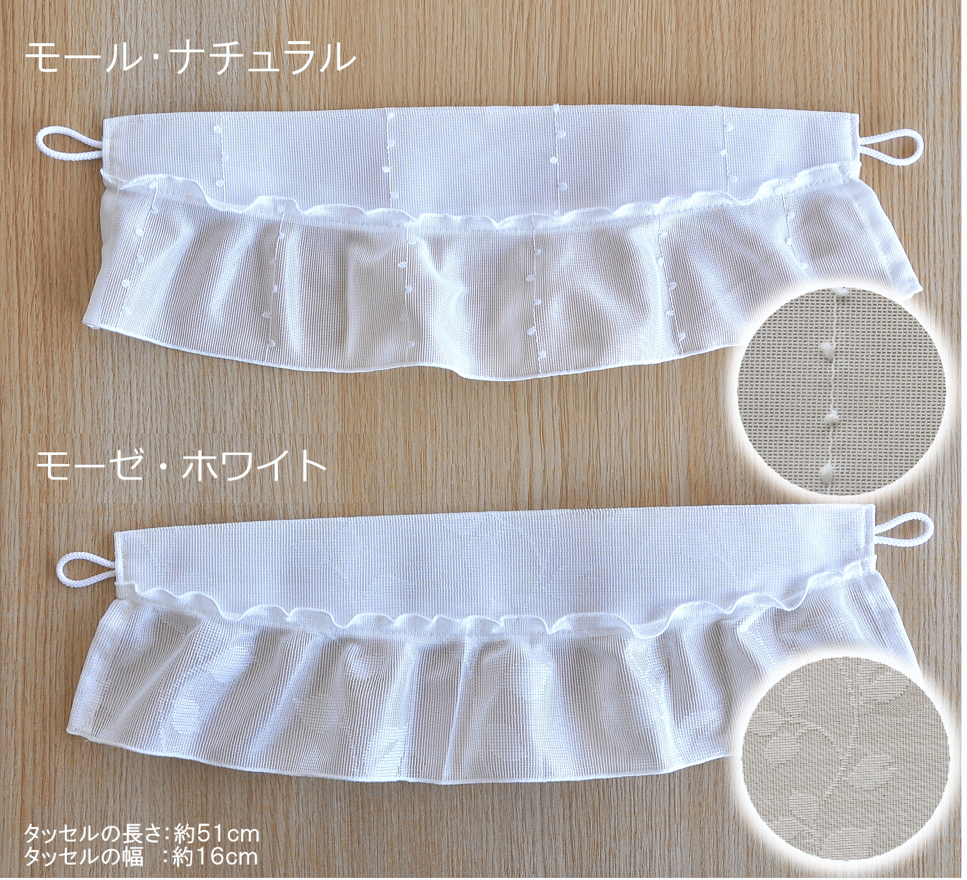 レースカーテンに合わせたフリル付きタッセルになっています。